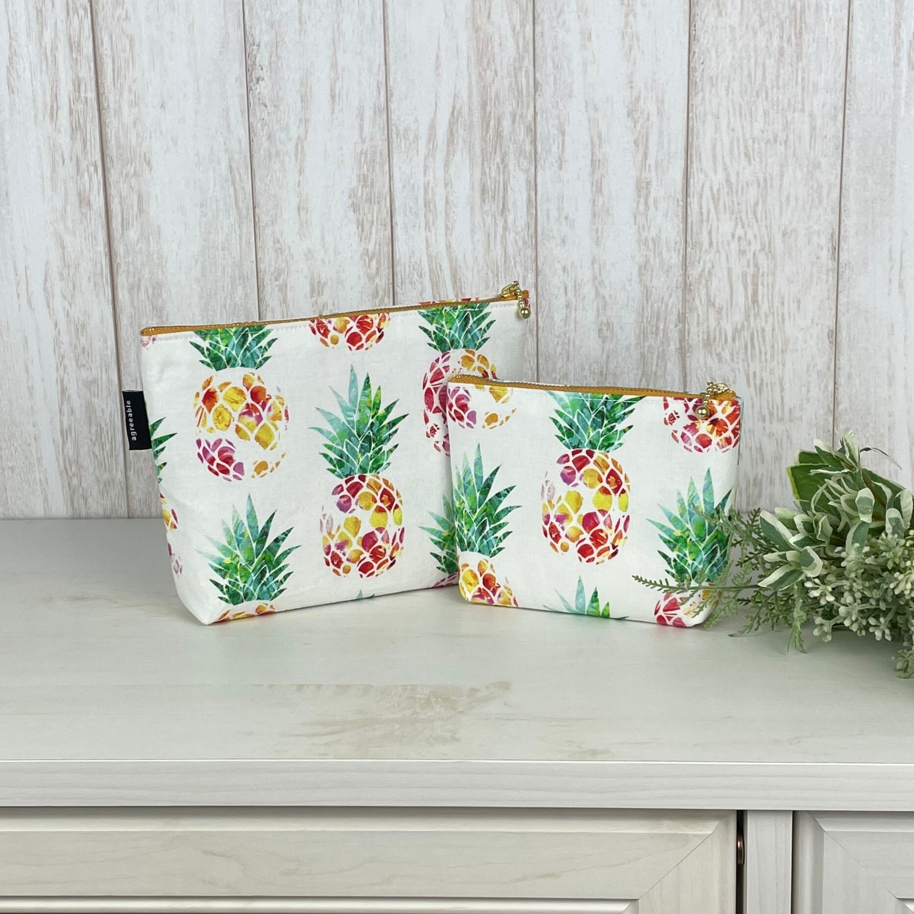 白地にカラフルなパイナップル柄が可愛いポーチです。