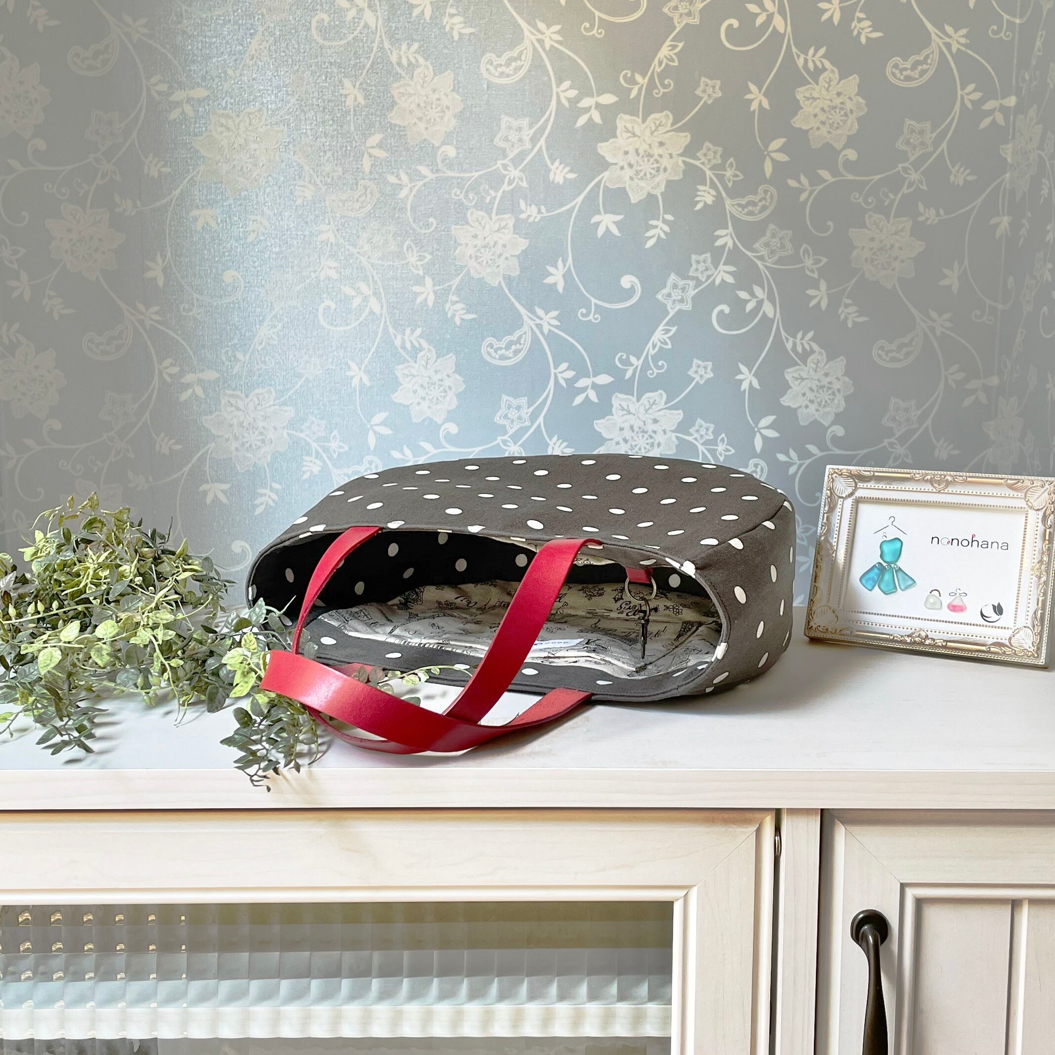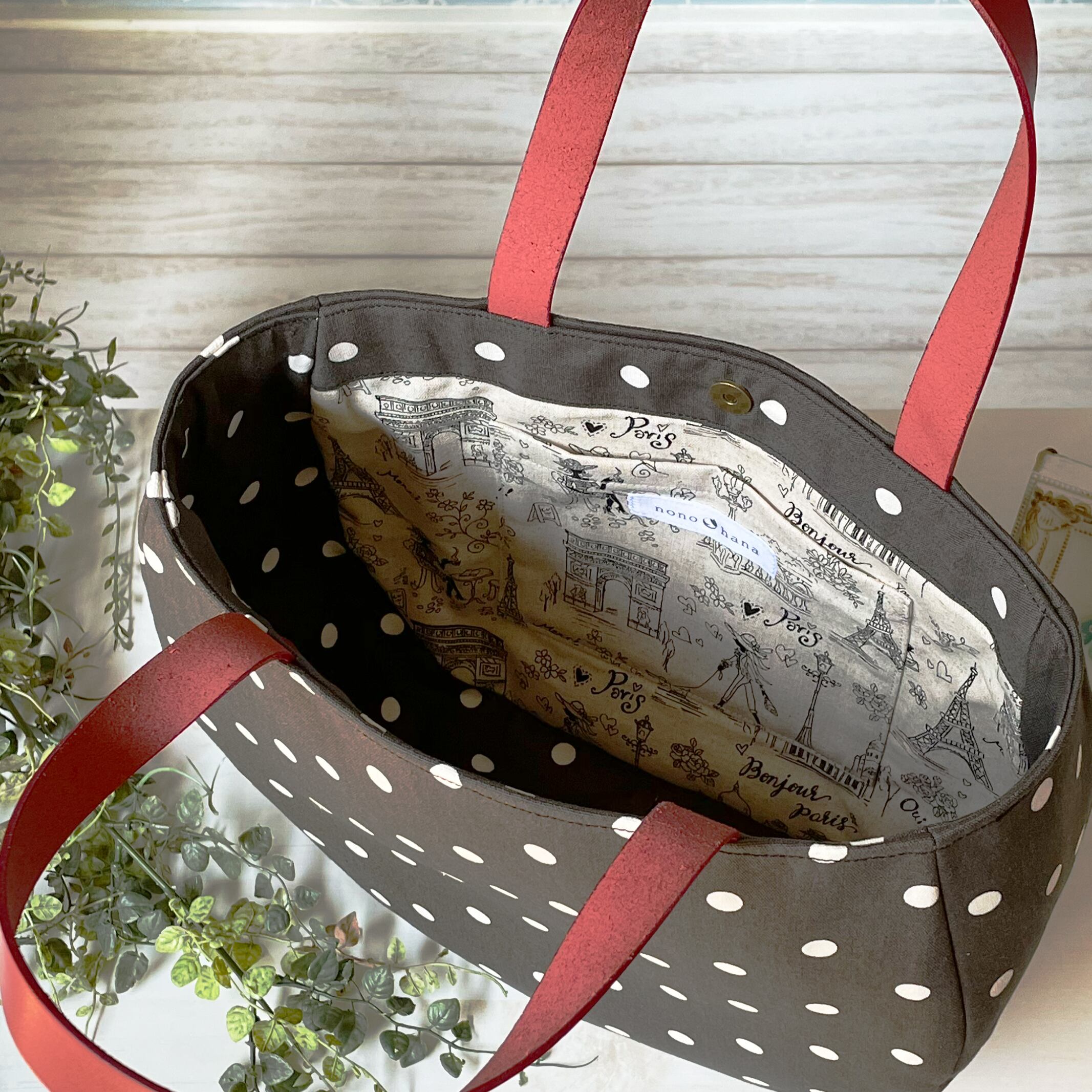 赤いヌメ革の持ち手が可愛くてお出かけするのがウキウキしそう♡